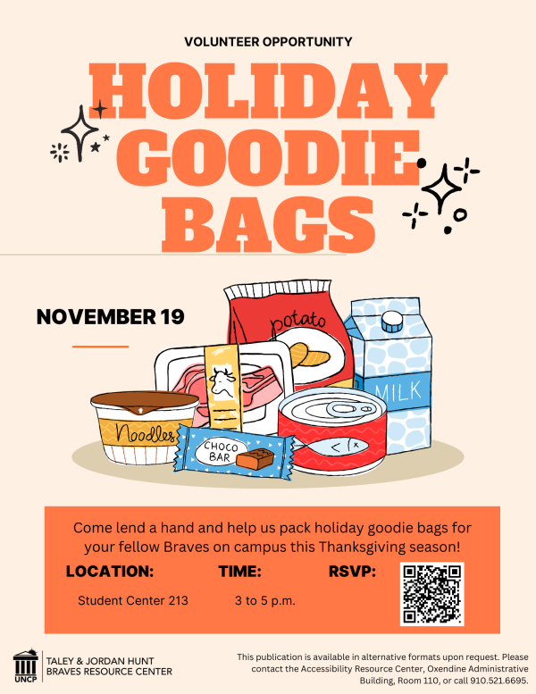 On Wednesday, November 19, the Braves Resource Center will be packing food bags to distribute to students who are staying on campus during the Thanksgiving break.